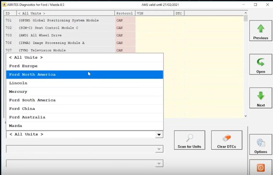 Start the Abrites Diagnostic for Ford software, select the appropriate model.