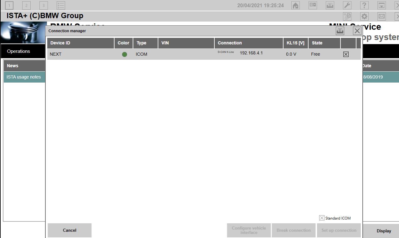 Select ICOM (Ethernet) This will be used with ISTA 4.28.x.x For BMW Standard Tools check setting below. Under BMW Standard Tools Config