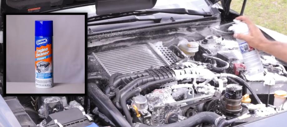 Spray cleaner liberally, avoid to use the cleaner which are not made for automotive application. Cleaner choice is base on how dirty your engine looks. Make sure to follow directions and ensure it never dries before being fully rinsed off your engine.