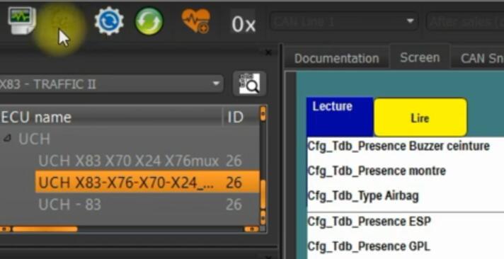 Running DDT4ALL, select “X83-TRAFFIC II”–>”UCH”–>”UCH X83-X76-X70-X24_V6.8”,click it