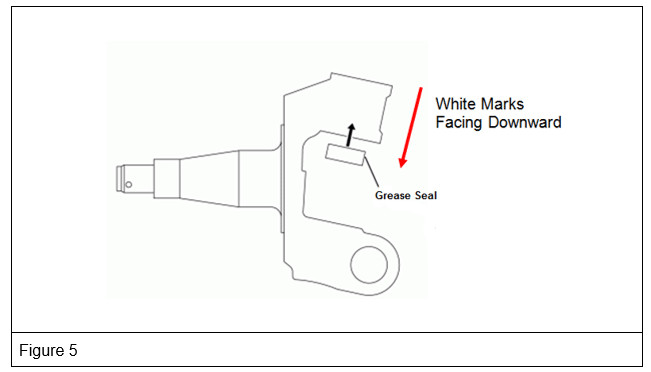 It is important to install these grease seals in the proper direction to allow grease to be discharged. Each seal has white marks on the downward side of the seal. (See Figure 6.)