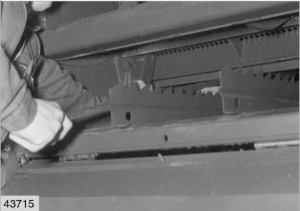2 Push the sealing plates (3 and 7) between the preconcave (1) and the machine housing on the right- and left-hand side.