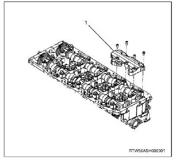 4.Confirm that the camshaft bearing cap is aligned with the alignment position of the camshaft(1).