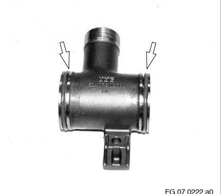 Insert O-rings in grooves (arrow) on connector and coat with petroleum jelly.