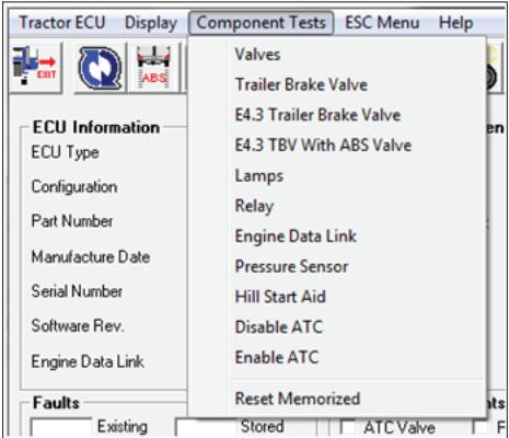 Tests” drop-down menu. Listen to ensure the correct valve is cycling. For TOOLBOX™ software 12 or higher, select the “Trailer Valve” under the “Component Test Trailer Valve” in the drop-down menu.