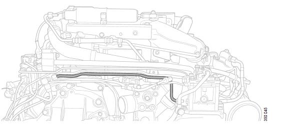 9.If the vehicle is fitted with an injection valve: Fit the injection valve air connection and the coolant pipe with clamp.