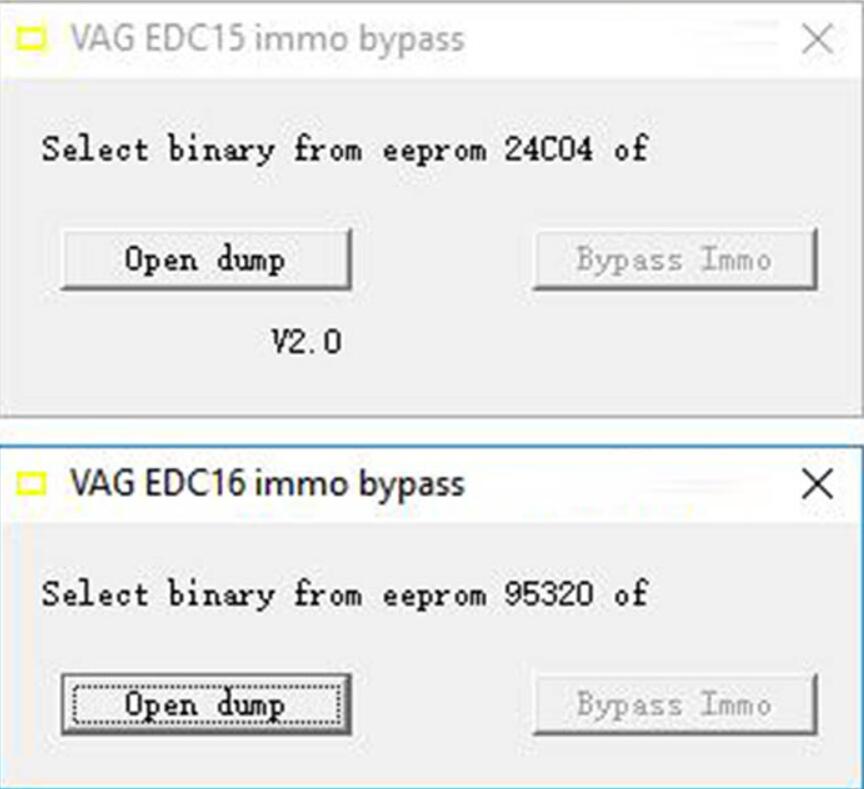 Step 2:Run VAG EDC 15 or EDC16 immo bypass software and select binary read out from 24C04 or 95320.